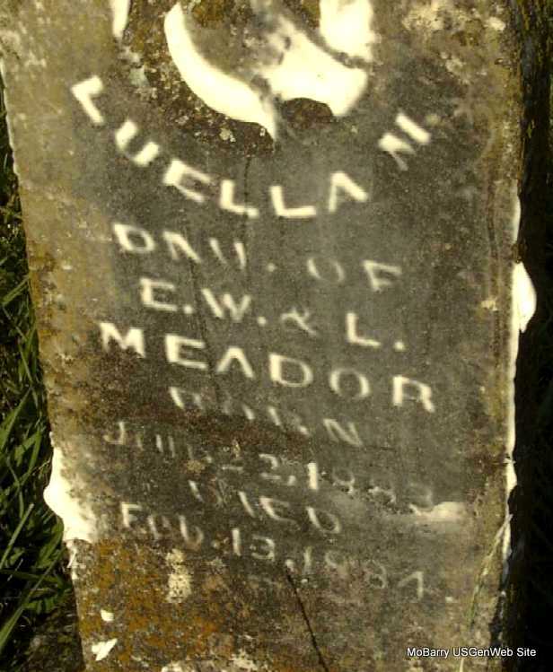 | MEADOR, Luella May | June 22, 1883 | Feb. 13, 1884 | Inscription: "Dau. of E. W. and L." - Research Note: Daughter of Eli Wilson Meador and Lurana Vermillion. | Note Phyllis Long Photo Darla Marbut |