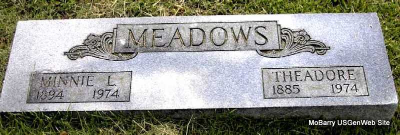 SSW: Minnie L. - Research Note: He was a son of Thomas Edward and Susan Katherine (Charles) Meadows. SSDI gives his last residence as Washburn, Barry Co., MO. | Note Gerald Haddock Census SSDI Phyllis Long Photo Darla Marbut |