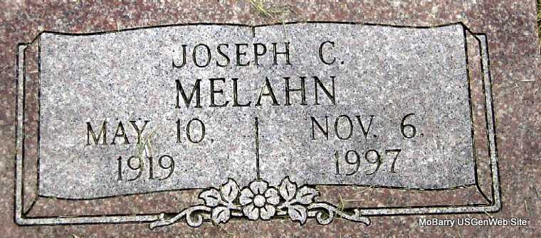| MELAHN, Joseph Charles | May 10, 1919 | Nov. 6, 1997 | Research Note: Son of Phillip Louis Melahn and Anna Laura Pratt. He first married Margaret E. Caldwell. Joseph C. Melahn, age 26, married Margaret E. Caldwell, age 21, on Nov. 18, 1945 in Hot Springs, Garland Co., AR. He second, Ruby (Roller) Marshall. | MO Marriage Records Census Phyllis Long Photo Darla Marbut |