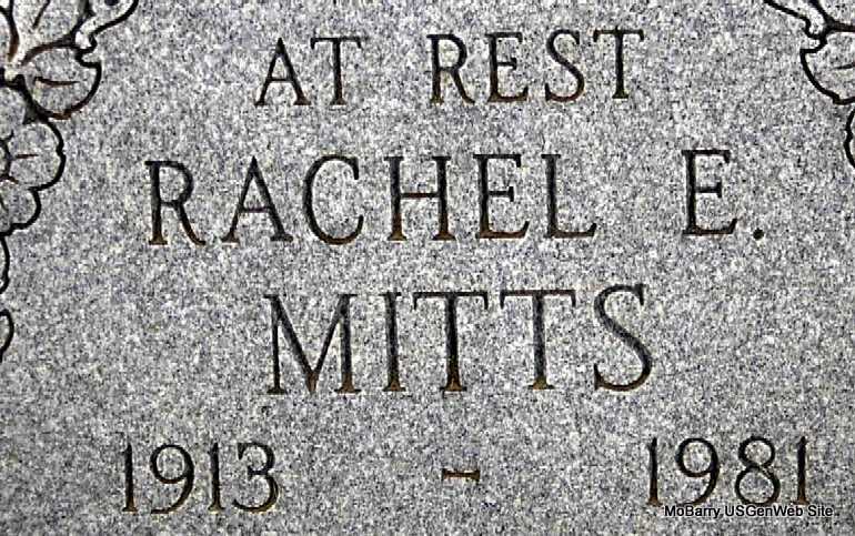 | MITTS, Rachel E. | 1913 | 1981 | Inscription: "At Rest" - Research Note: Daughter of Ira E. Mitts and Elsie Smith. | Census Phyllis Long Photo Darla Marbut |
