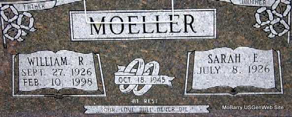 | MOELLER, William Richard | Sept. 27, 1926 | Feb. 10, 1998 | SSW: Sarah E. - Inscription: "Oct. 18, 1945" - Research Note: Son of Edward A. C. and Anna Moeller. | Census Phyllis Long Photo Darla Marbut |