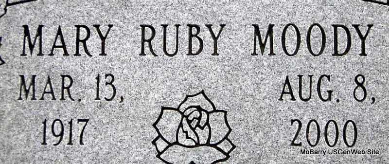 | MOODY, Mary Ruby (HORNER) | Mar. 13, 1917 Cassville, Barry Co., MO |