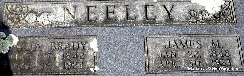 | NEELEY, Julia Ann (BRADY) | May 27, 1842 St Francois Butler Co., MO |