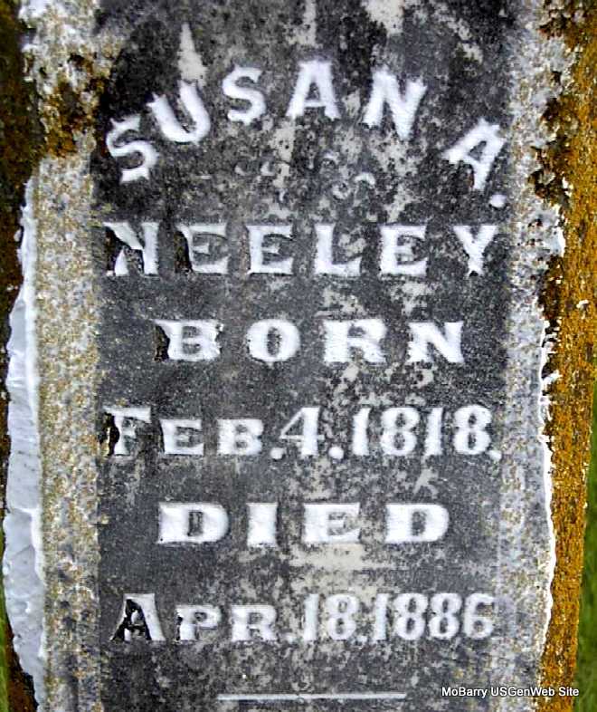 | NEELEY, Susan A. | Feb. 4, 1818 | Apr. 18, 1886 | SSW: Abner V. | Photo Darla Marbut |