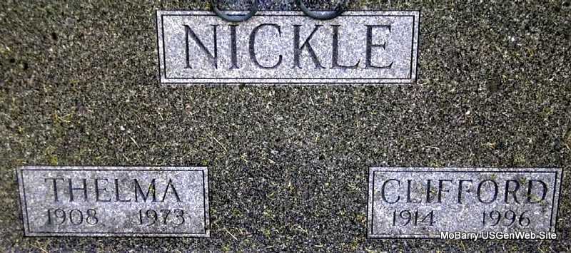 | NICKLE, Thelma Marie (HENBEST) | Dec. 14, 1908 | June 10, 1973 | SSW: Clifford - Research Note: Thelma was a daughter of William H. and Ocie (Ball) Henbest. Clifford Nickle, age 22, married Thelma Henbest, age 22, on Dec. 23, 1933 in Barry Co., MO. | Note Donna Cooper MO Marriage Records Phyllis Long Photo Darla Marbut |