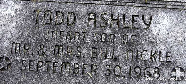 | NICKLE, Todd Ashley | No Date | Sept. 30, 1968 | Inscription: "Infant Son of Mr. and Mrs. Bill Nickle" | Photo Darla Marbut |