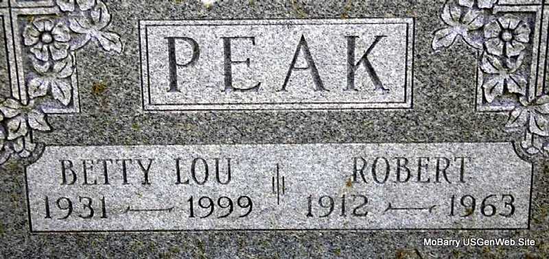| PEAK, Betty Lou (BENNETT) | 1931 | 1999 | SSW: Robert - Research Note: Named in her brothers' obits at Arnhart Cemetery. Daughter of Ralph Manford Bennett and Willia Mildred Thomas. | Note Phyllis Long Photo Darla Marbut |