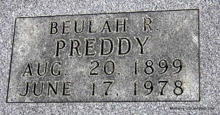 | PREDDY, Beulah R. (SANDERS) | Aug. 20, 1899 AR |