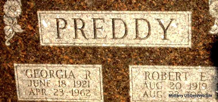 SSW: Georgia R. - Research Note: He was a son of Thomas Jefferson and Beulah (Sanders) Preddy. He was an Army Air Corps veteran. He had been a salesman for General Motors in Michigan. He moved to Cassville in 1963 where he co-owned and operated Preddy's Grocery, Cassville Tool and Machine Shop, Cassville Tool Service, and Preddy's Used Cars. He also was a cattle farmer. He was a member of Seven Valley Play Boys musical group. He was a member of the Baptist Church in Butterfield where he was a Deacon. He married Virginia Carnes Reed on September 9, 1963, in Berryville, Arkansas. He was preceded in death by his first wife, Georgia; and three brothers, George, T. J., and Gerald Preddy. - Photo of Bob | Note Donna Cooper Online Obit Phyllis Long Photo Darla Marbut Bob's Photo Don Cummons |