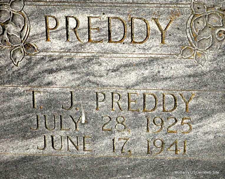 Research Note: He was a son of Thomas Jefferson and Beulah (Sanders) Preddy. According to the family history, T. J., age 16, drowned in Michigan. | Brother's Obit Photo Darla Marbut |