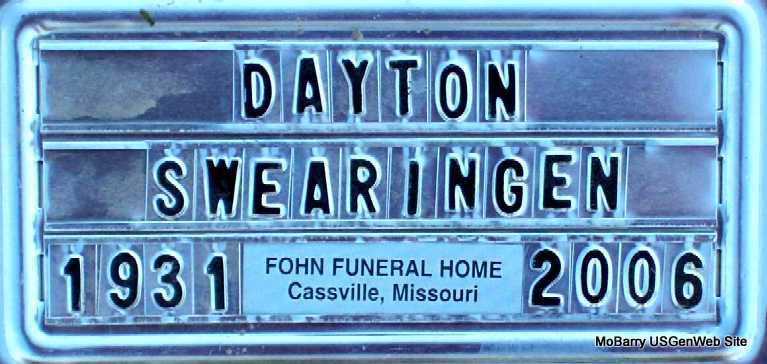 | SWEARINGEN, Dayton L. | Sept. 24, 1931 Purdy, Barry Co., MO |