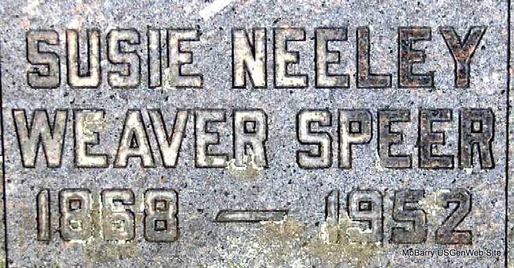 | SPEER, Susie (NEELEY) (WEAVER) | Mar. 25, 1868 Barry Co., MO |