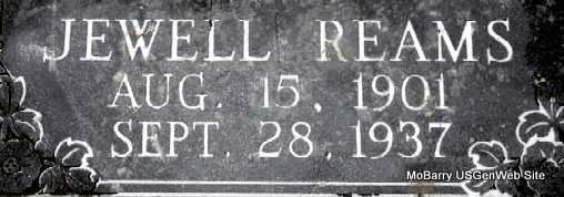 | REAMS, Jewell | Aug. 15, 1901 | Sept. 28, 1937 | Research Note: Daughter of George W. Reams and Minerva Belle Hefley. Jewell was a twin to Jewett. - Cassville Democrat, May 8, 1920 - Otis Fisher and family of Cassville, Mr. and Mrs. George Reams and daughter Jewel, and Mr. and Mrs. H. Dunn of Corinth, took dinner with Charles Hefley, Sunday. | Census Online Newspapers Phyllis Long Photo Darla Marbut |