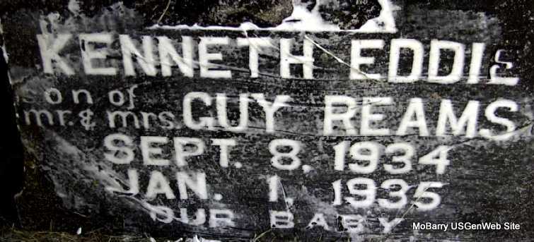 Inscription: "Son of Mr. and Mrs. Guy Reams - Our Baby" - Research Note: Son of Guy Reams born Barry Co., MO and mother's maiden name was Peterson born Ulysses, KS. Guy Reams was the informant. | Death Certificate Phyllis Long Photo Darla Marbut |
