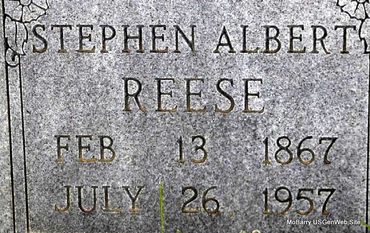 Research Note: He was a son of Stephen Albert Reese Sr. and Catherine "Kate" Cook. His wife was Isabelle Meador. State Hospital records was the informant. | Note Donna Cooper Death Certificate Phyllis Long Photo Darla Marbut |