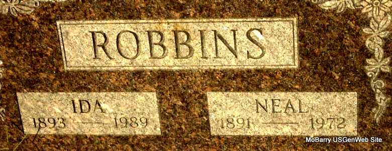 SSW: Neal - Research Note: Daughter of Joseph Marion Garner and Martha Melvina Henrietta Ernst, both buried at Horner Cemetery. Neal Robbins, age 20, married Ida Garner, age 18, on Dec. 24, 1911 in Barry Co., MO. | MO Marriage Records Census Phyllis Long Photo Darla Marbut |