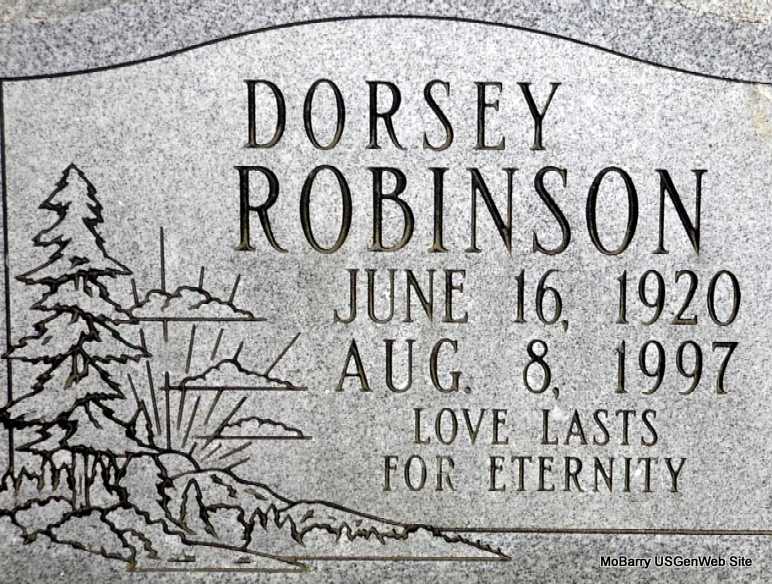 | ROBINSON, Dorsey Fern | June 16, 1920 | Aug. 8, 1997 | Inscription: "Love Lasts For Eternity" - Research Note: SSDI gives her last residence as Exeter, Barry Co., MO. Dorsey may be the daughter of Grover C. Beck and Smithie Lucinda Hilburn, both buried at Horner Cemetery. | SSDI Note Phyllis Long Photo Darla Marbut |