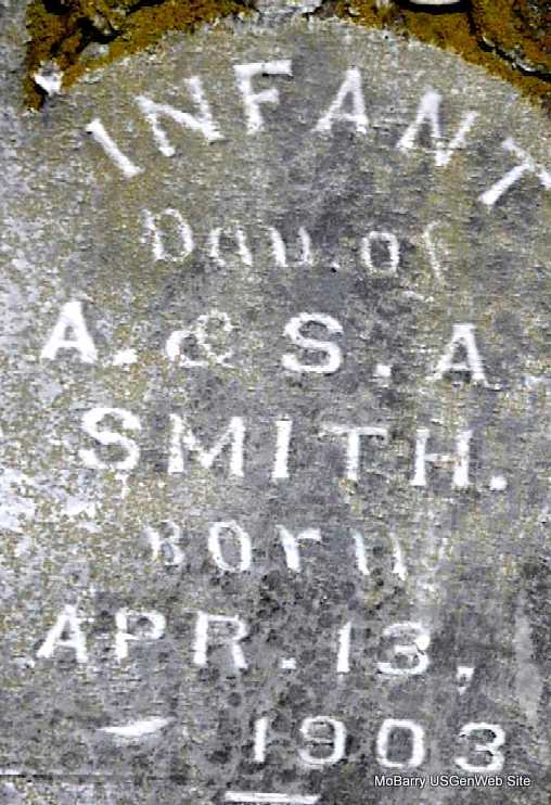 | SMITH, Infant | No Date | Apr. 13, 1903 | Inscription: "Infant Dau. of A. and S. A." | Photo Darla Marbut |