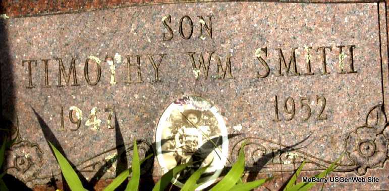 Inscription: "Son" - Research Note: Son of C. W. "Bill" Smith and Alice May Harris. Mrs. C. W. Smith of Cassville, MO was the informant on the death certificate. He went into cardiac arrest during surgery for hypospadius. | Death Certificate Phyllis Long Photo Darla Marbut |