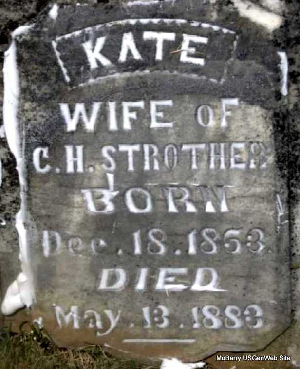 | STROTHER, Kate | Dec. 18, 1853 | May 13, 1883 | Inscription: "Wife of C. H." - Research Note: The 1999 transcription for Kate was incorrectly posted as Kate Schroker, with this inscription: "Wife of H. Schroker" - Another Photo - Another Photo | Photo Darla Marbut |