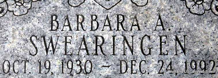 | SWEARINGEN, Barbara Adele (NEELEY) | Oct. 19, 1930 | Dec. 24, 1992 | Research Note: 1999 transcribed Inscription: "Our Beloved Mother" - Research Note: Daughter of Horace Bryan Neeley and Jewett Cleo Reams. | Note Phyllis Long Photo Darla Marbut |
