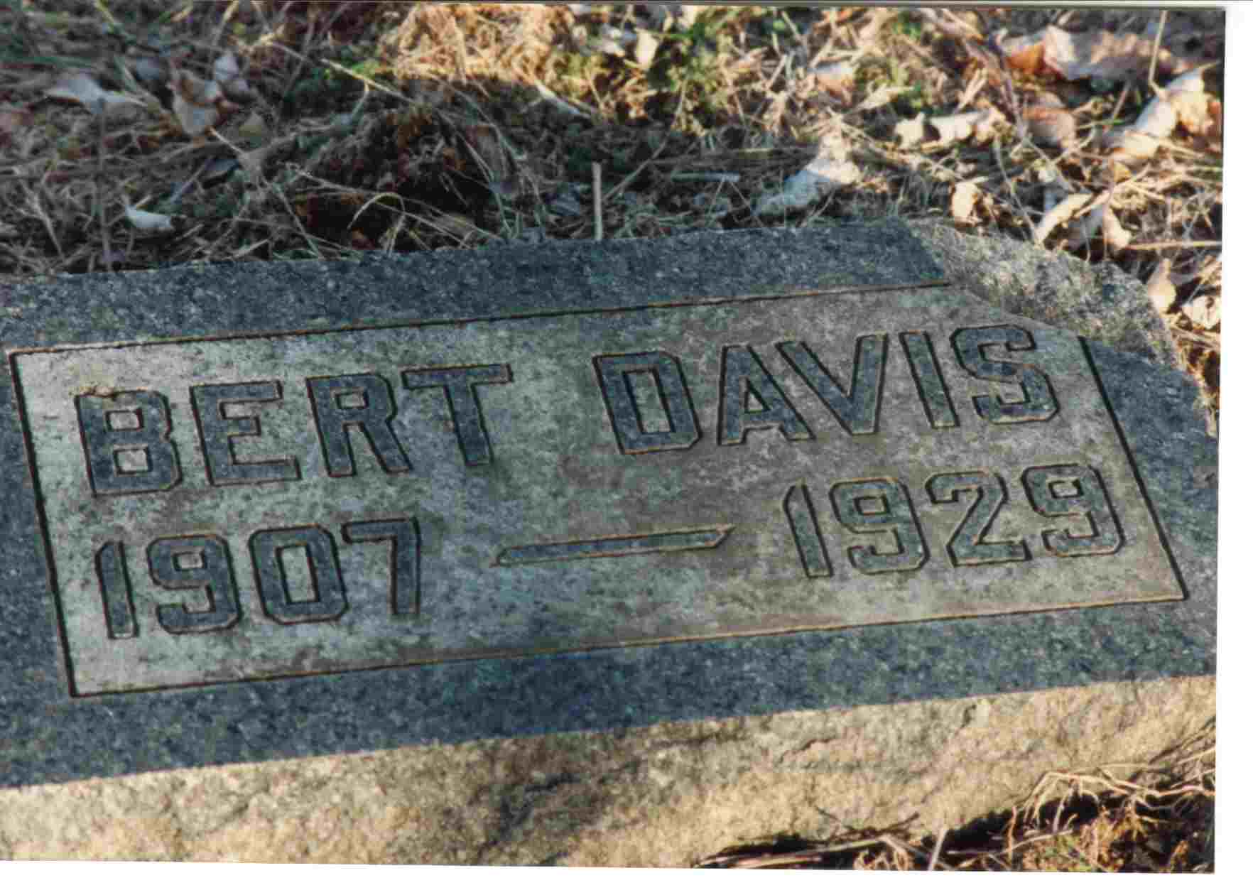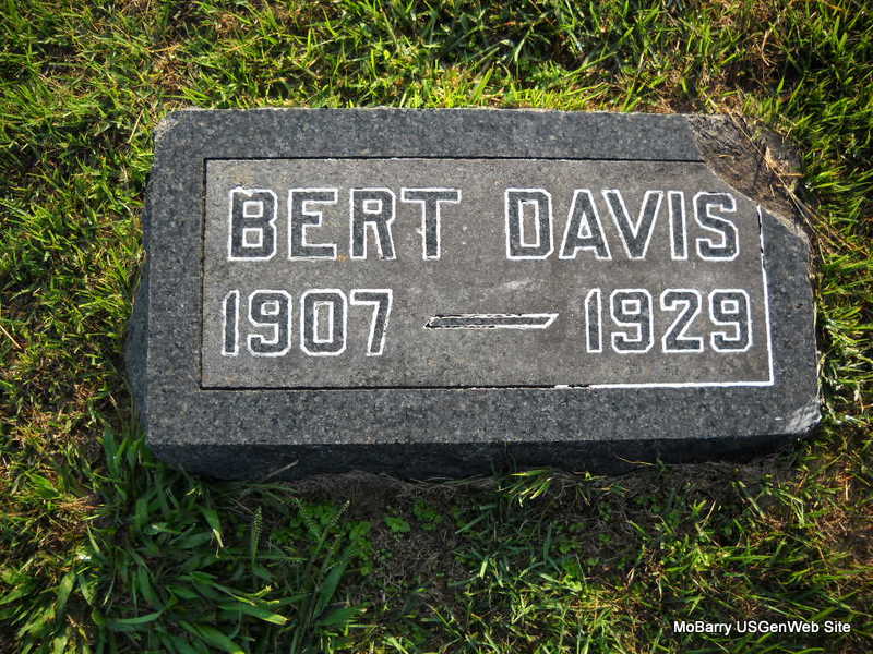 | DAVIS, Elbert "Bert" | May 30, 1907 | Sept. 26, 1929 | Research Note: Steven Elbert "Elzy" Jr. was the son of Steven Elbert Davis Sr. and Rhoda Orlean West. - Another Photo | Headstone Note Photo Shelda Davis Kempton Photo Donna Cooper Ted Roller |