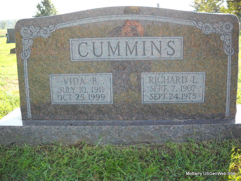 | CUMMINS, Richard L. | Sept. 7, 1907 | Sept. 24, 1975 | SSW: Vida B. - Son of Elmer Rudolph Cummins and Anna May Carpenter. | Headstone Jack Delmar Census Phyllis Long Photo Donna Cooper Ted Roller |