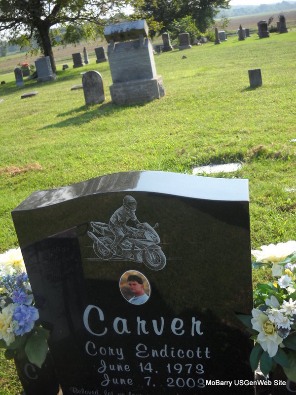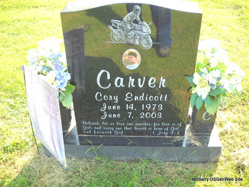 Research Note: Donna's Note: Cory E. Carver, age 29, of Wentworth, died June 7, 2003, as a result of injuries sustained in a motorcycle accident on Business Loop I-44 in Mt. Vernon. He was born June 14, 1973, in Minden, Louisiana. He was a building contractor. He coached girls Little League softball in Pierce City and was a member of the United Methodist Church in Springhill, Louisiana. He was a son of Glenn and Linda (Endicott) Carver. - Another Photo - Another Stone | Monett Times June 9, 2003 Mary Homesley Monett Times Donna Cooper Photos Donna Cooper Ted Roller |