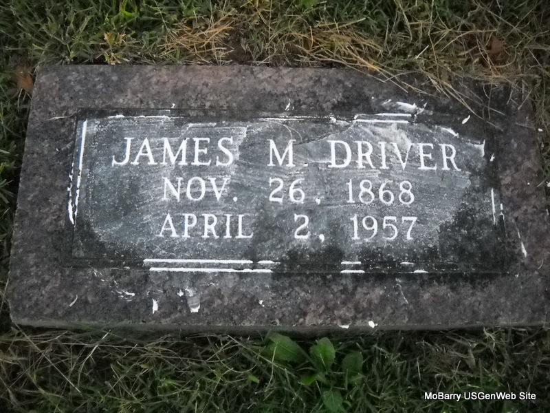 | DRIVER, James M. | Nov. 26, 1868 | Apr. 2, 1957 | Research Note: Son of Samuel Driver and Fannie (Driver) Christopher. Maiden name unknown. Husband of Addie J. Parmley. - 1870 Census, Capps Creek, Barry, Missouri - Samuel Driver age 37; Fannie, age 22, James, age 1. - 1880 Census, Capps Creek Twp., Barry Co., Missouri - Listed in the household of Jesse Christopher, age 40 and Fannie Christopher, age 38, as James Driver, step-son, age 10, born MO with sister Catherine Driver, step-daughter age 9. | Census Phyllis Long Photo Donna Cooper Ted Roller |