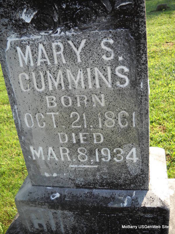 | CUMMINS, Mary Susan (HISAW) | Oct. 21, 1861 | Mar. 8, 1934 | Research Note: Jack posted May and not March as the stone reads - so data was changed to read as the stone reads. Wife of John Benjamin Cummins. Daughter of William Hisaw and Nancy Richardson. - Another Photo | Headstone Jack Delmar Census Phyllis Long Photo Donna Cooper Ted Roller |