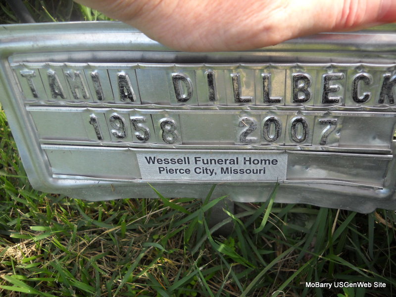 Research Note: Temporary Marker - Tami Anne Newton Dillbeck, age 48, of Pierce City, died April 17, 2007, at Cox Medical Center South in Springfield following a sudden illness. She was born September 14, 1958, in San Diego, California. She was a 1976 graduate of Pierce City High School. She was preceded in death by her father, Addison Newton, in 1985; and one brother, Wes Newton, in 2003. - Another Photo | Monett Times Apr. 19, 2007 Donna Cooper Photos Donna Cooper Ted Roller |