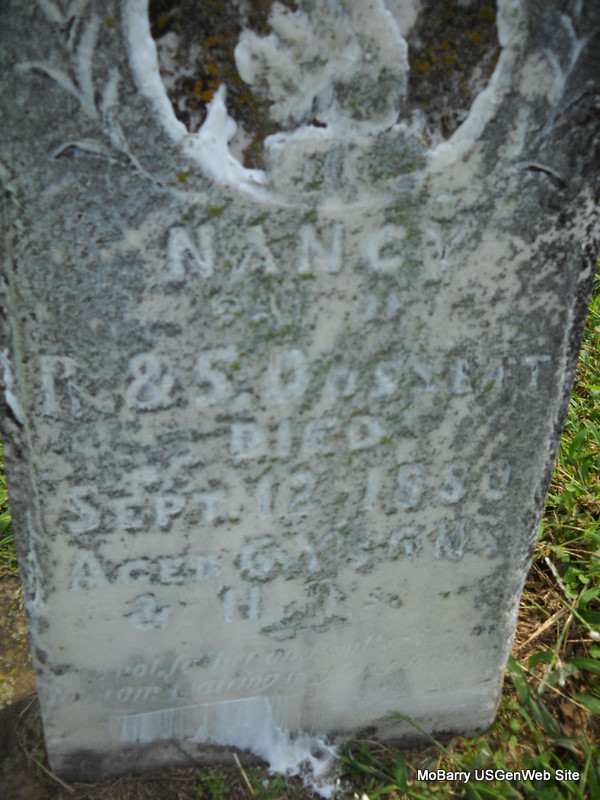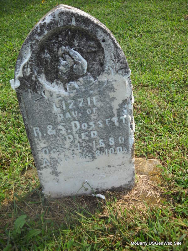 | DOSSETT, Lizzie | 1880 | Oct. 4, 1880 | Inscription: "Dau. of R. & S. - Aged 3 Ms. & 10 Ds." | Photo Donna Cooper Ted Roller |