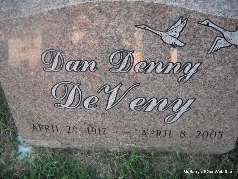 | DEVENY, Dan Denny | Apr. 29, 1917 | Apr. 8, 2005 | Research Note: SSDI gives his last residence as Tucson, Pima Co., AZ. SSN issued in NE. 1920 Census, California, Madison, Arkansas - Dan is with his parents Charles E., age 30 and mother Bonnie E., age 22. - 1930 Census, California, Madison, Arkansas - Charles Deveny, age 42, Bonnie E., age 34, Daniel, age 12, Lena M., age 8, Nina E., age 5, and Robert A., age 3. | Census Phyllis Long Photo Donna Cooper Ted Roller |