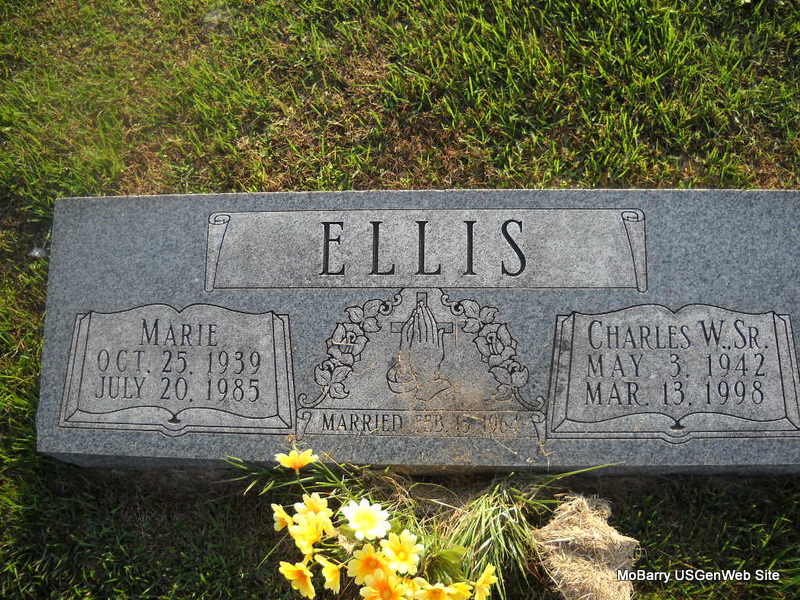 | ELLIS, Marie | Oct. 25, 1939 | July 20, 1985 | SSW: Charles W. - Inscription: "Married Feb. 15?, 1964" | Photo Donna Cooper Ted Roller |