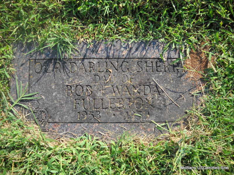| FULLERTON, Sherry | 1953 | 1959 | Inscription: "Our Darling - Dau. of Bob & Wanda" - Research Note: Daughter of Robert Lee Fullerton and Wanda Louise Kelly. | Findagrave.com Phyllis Long Headstone Donna Cooper |
