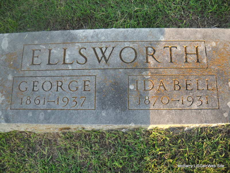 SSW: Ida Bell - Research Note: His death certificate reads that he was widowed and a farmer. His wife was Ida Ellsworth. Residence was RFD #2, Wentworth, MO, and his father was James Ellsworth (mother Eleanor Stout). Mrs. Joe Abegg of Wentworth, MO, was the informant. - George Ellsworth married his first wife Minnie L. Bourland on Oct. 2, 1888 in Newton Co., MO. He next married Ida McCully/McCoullough on July 22, 1897 in Newton Co., MO. | MO Marriage Records Phyllis Long Death Certificate Donna Cooper Photo Donna Cooper Ted Roller |