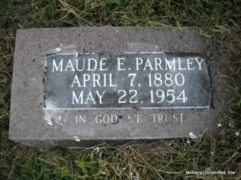 | PARMLEY, Maude E. | Apr. 7, 1880 | May 22, 1954 | Inscription: "In God We Trust" - Research Note: Wife of John G. Parmley. | Note Phyllis Long Photo Donna Cooper Ted Roller |