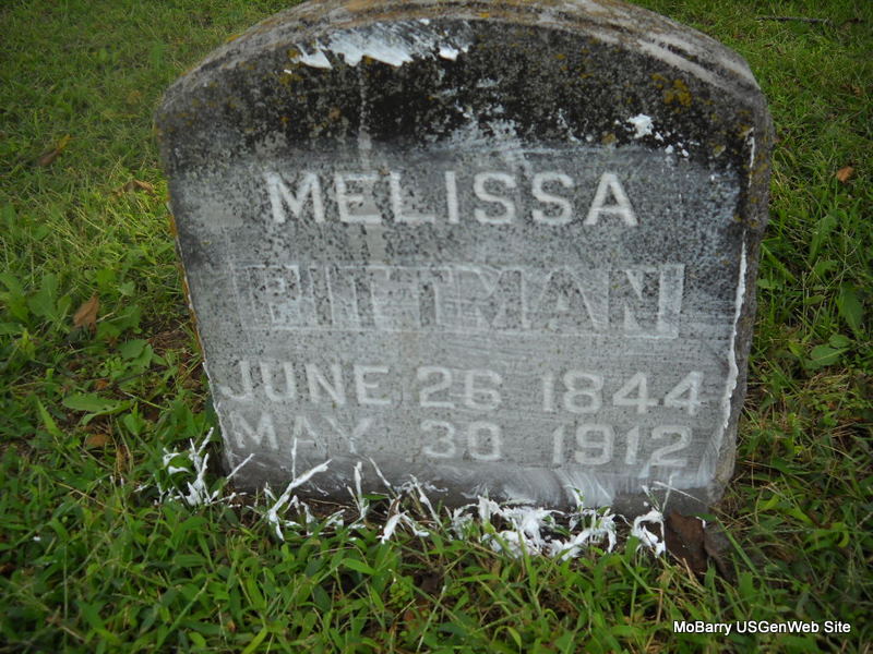 Research Note: Husband of Melissa. Son of Daniel and Clarissa Pittman. - 1900 Census, Capps Creek, Barry, Missouri - John T. Pittman, head, born Nov. 1848 TN, age 51, married 17 years, parents born TN, landlord; Melissa B., wife, born June 1844 MO, age 55, married 17 years, mother of 1 child, living, born MO, father born VA, mother AR; Lillie B. Garrett, granddaughter, born Jan. 1887 MO, age 13, father born MO, mother KY. | Census Phyllis Long Photo Donna Cooper Ted Roller |