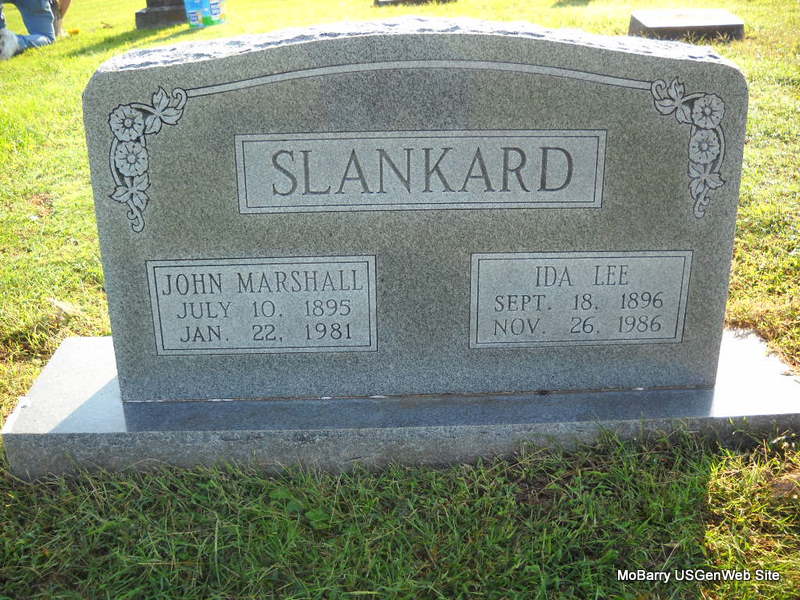 | SLANKARD, John Marshall | July 10, 1895 | Jan. 22, 1981 | SSW: Ida Lee - Research Note: Son of John Marshall and Melissa Lavina Hisaw. SSDI gives his last residence as Wentworth, Newton Co., MO. | Census SSDI Phyllis Long Photo Donna Cooper Ted Roller |