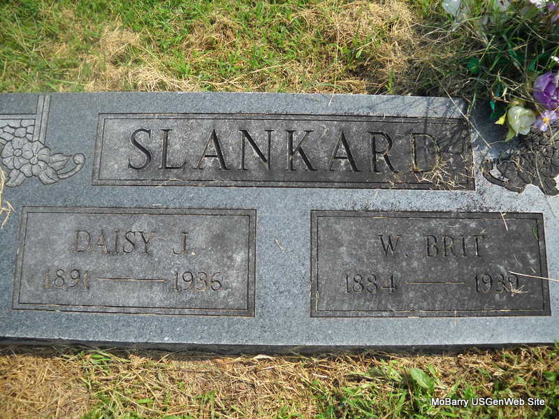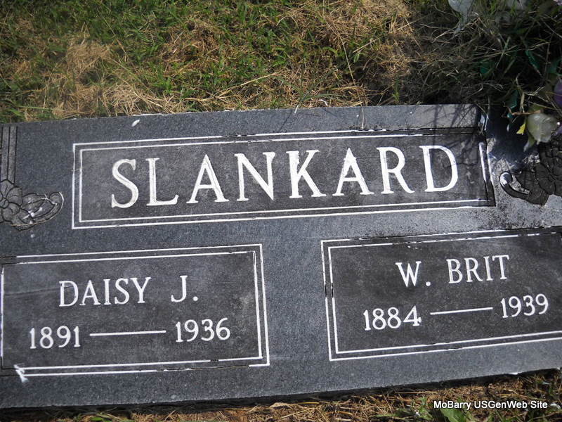 SSW: Daisy - Research Note: He was a farmer, widowed, and his wife's name was Daisy Wood. Maiden name of Jetwood was given on the death certificate. Phyllis' Note: On Daisy's death certificate, her father's surname was Wood and her mother's Jett. He was a son of John M. Slankard, born KY, and Melissa Hisaw, born Barry Co., MO. Inez Slankard, daughter, of Pierce City, MO, was the informant. | Death Certificate Phyllis Long Photo Donna Cooper Ted Roller |