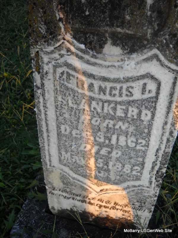 | SLANKARD, Francis I. | Dec. 3, 1862 | Mar. 15, 1882 | No Data | Photo Donna Cooper Ted Roller |