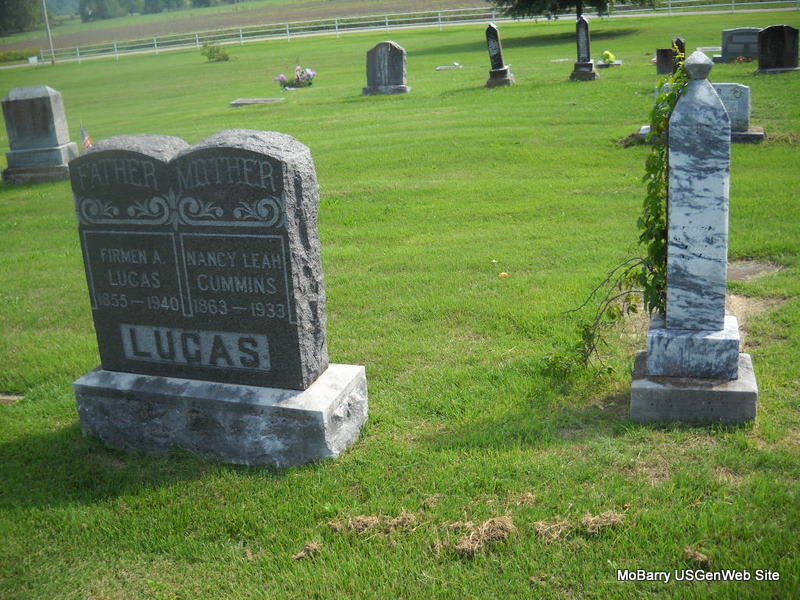 On December 6, 1855, he was married to Nancy Richardson who also came from one of the oldest families to settle in this county. She died died about eight years ago. To them were born seven children. Five are still living. They are: Mary E. West of Oklahoma, Melissa L. Slankard, Mary S. Cummings, Fred and Walter Hisaw of Peirce [Pierce] City.