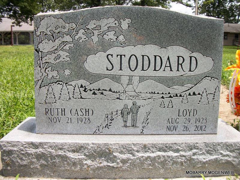 | STODDARD, Ruth (ASH) | Nov. 21, 1928 | No Date | SSW: Loyd - Research Note: Daughter of Marion Ash and Monie Lee Holloway. Ruth Ash, age 18, married Loyd Stoddard, age 23, on Apr. 17, 1947 in Lawrence Co., MO. - Back of Stone - Inscription: "House of Stoddard established April 17, 1947" - Another Photo | Census MO Marriage Records Phyllis Long Photos Diana Cope |
