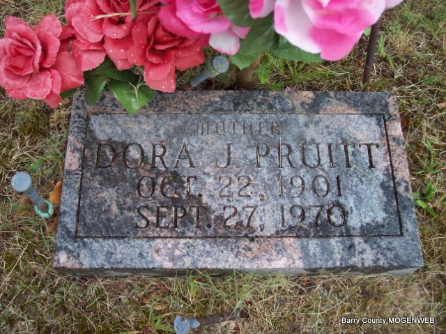 | PRUIT, Dora J. | Oct. 22, 1901 | Sept. 27, 1970 | Inscription: "Mother" | Headstone Mary Homesley Photo Diana Cope |