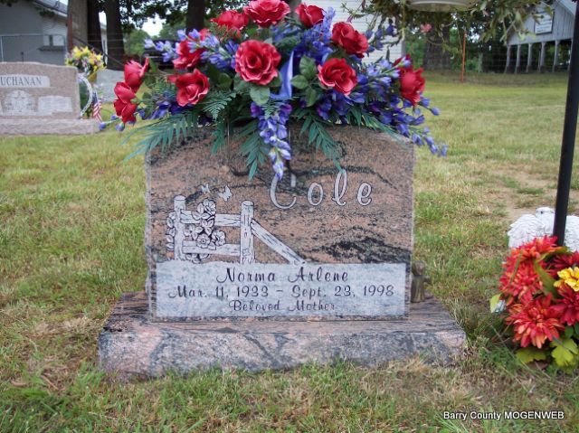| COLE, Norma Arlene | Mar. 11, 1933 | Sept. 23, 1998 | Inscription: "Beloved Mother" | Headstone Mary Homesley Photo Diana Cope |