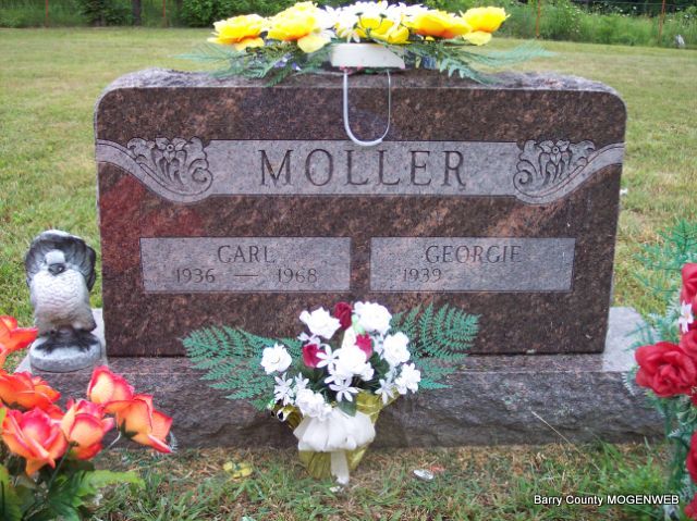 | MOLLER, Carl | 1936 | 1968 | SSW: Georgie - Research Note: Son of Ray P. Moller and Cleta May Pogue, both buried at Rocky Comfort Cemetery. | Mother's Obit Phyllis Long Headstone Mary Homesley Photo Diana Cope |