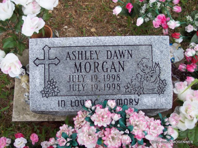 | MORGAN, Ashley Dawn | July 19, 1998 | July 19, 1998 | Inscription: "In Loving Memory" | Headstone Mary Homesley Photo Diana Cope |