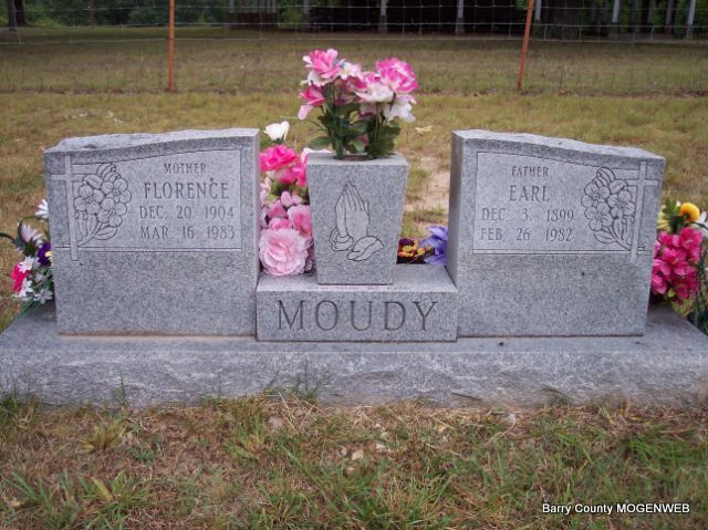 | MOUDY, Earl Marion | Dec. 3, 1899 | Feb. 26, 1982 | SSW: Florence Moudy - Inscription: "Father" - Inscription: "Wed Nov. 16, 1923" - Research Note: Son of Silas Moudy and Martha Ann Roller both buried at Russell Cemetery. - Another Photo | Census Phyllis Long Headstone Mary Homesley Photos Diana Cope |