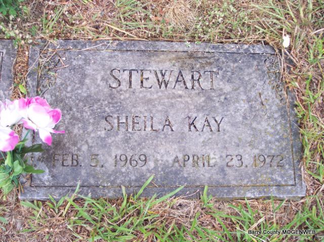 | STEWART, Sheila Kay | Feb. 5, 1969 | Apr. 23, 1972 | Research Note: Daughter of Truman Leo Stewart and Linda Kay Moudy. - Another Photo | Note Phyllis Long Headstone Mary Homesley Photos Diana Cope |