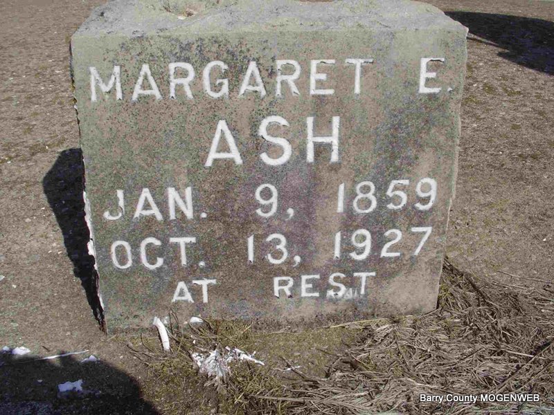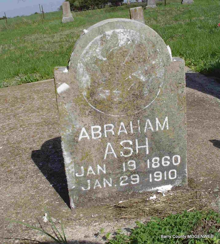 Research Note: Son of Alexander Ash and Eliza Jane Gann. His wife was Margaret Elizabeth Becknell. - February 10, 1910, Thursday, Cassville Republican - Purdy News: Eld Harlan preached the funeral of Abe Ash Sunday. Mr. Ash passed away rather unexpectedly as his health was considered fair. He was buried at the Maddy burial grounds west of town. | Family History Rose Sheldon Newton Census Online Newspapers Phyllis Long Photo Donna Cooper |